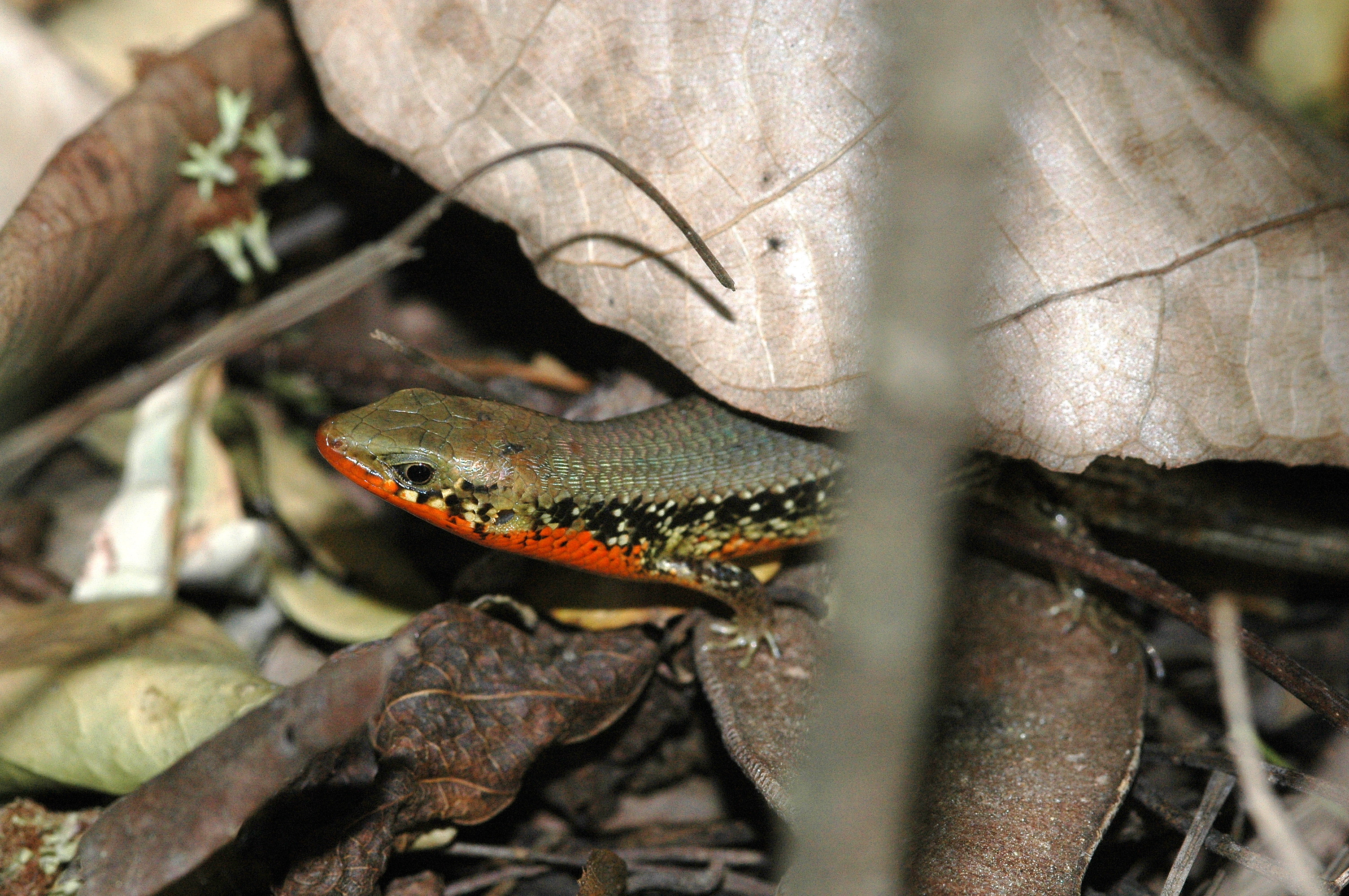 In all my time at the Mundanthurai Plateau, both in the late 90s and subsequent visits into the mid-2000’s, I never found the location especially productive for large mammals, with only Chital, that were reintroduced here, and Sambar Deer, among the regulars – this despite the copious sources of water from the rivers of the Tamarabarani Basin. There was a healthy diversity of smaller mammals however, of which Nilgiri Langur and Indian Giant Squirrel were the most visible, albeit mostly restricted to the riparian forest. Birdlife was healthy and typical of this habitat/altitude for Peninsular India, and there were a handful interesting herpetofauna, including an endemic tree skink of the genus Dasia, and a species of gliding frog (Rhacophoridae), that I found in the Plateau.