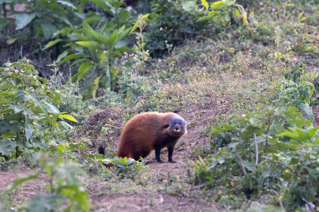 Three nights exploring the plantation-mid-elevation rainforest matrix at Valparai was expected to produce the bulk of these species, and we did have excellent views of a pair of Brown Palm Civet (which obliged by visiting the periphery of our accommodation one night), Lion-tailed Macaque, Nilgiri Langur and Jungle-striped Squirrel, from here. An unexpected bonus from this landscape was a sighting of a Sloth Bear (while there is a healthy population of these Ursids here, most sightings are only logged when people unadvisedly totter outside their homes, late at night, and stumble upon not quite as endearing as Baalu, individuals). We also had good sightings of Stripe-necked Mongoose, innumerable Gaur, Indian Giant Flying Squirrel, Malabar Giant Squirrel, Indian Hare and Red Muntjac. While sightings of the rare Nilgiri Marten and uncommon Brown Mongoose were always going to be a matter of chance, we also missed Nilgiri Tahr, despite repeated effort in a slope where they are regularly sighted, as well as Indian Leopard, which are relatively commonly seen in this landscape, after dusk.