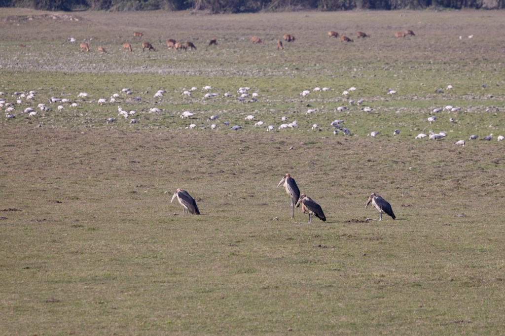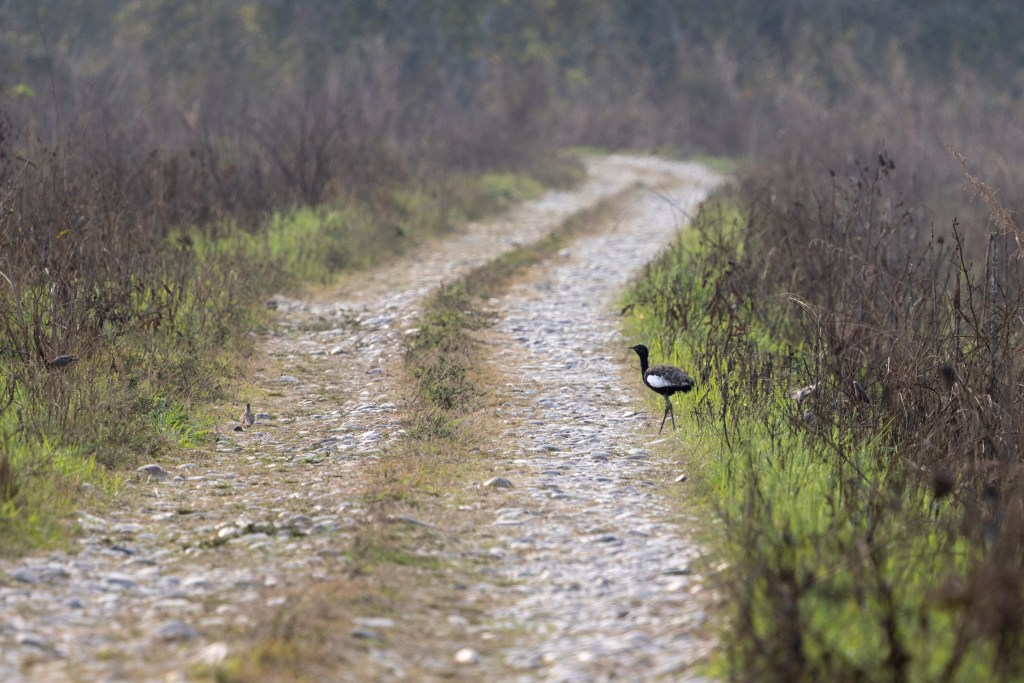 Days 1, 2 & 3, Kakaijona and Manas: Our trip started at Guwahati, with a sensory overload at the Boragaon Waste Disposal site, firmly on the global birding community’s map as the most reliable site for the endangered Greater Adjutant Stork. We saw several of the imposing creatures, perched on heaps of garbage, characteristic, dangling gular pouch and all, silhouetted in an all encompassing smoky haze. Just like in most pictures of them.