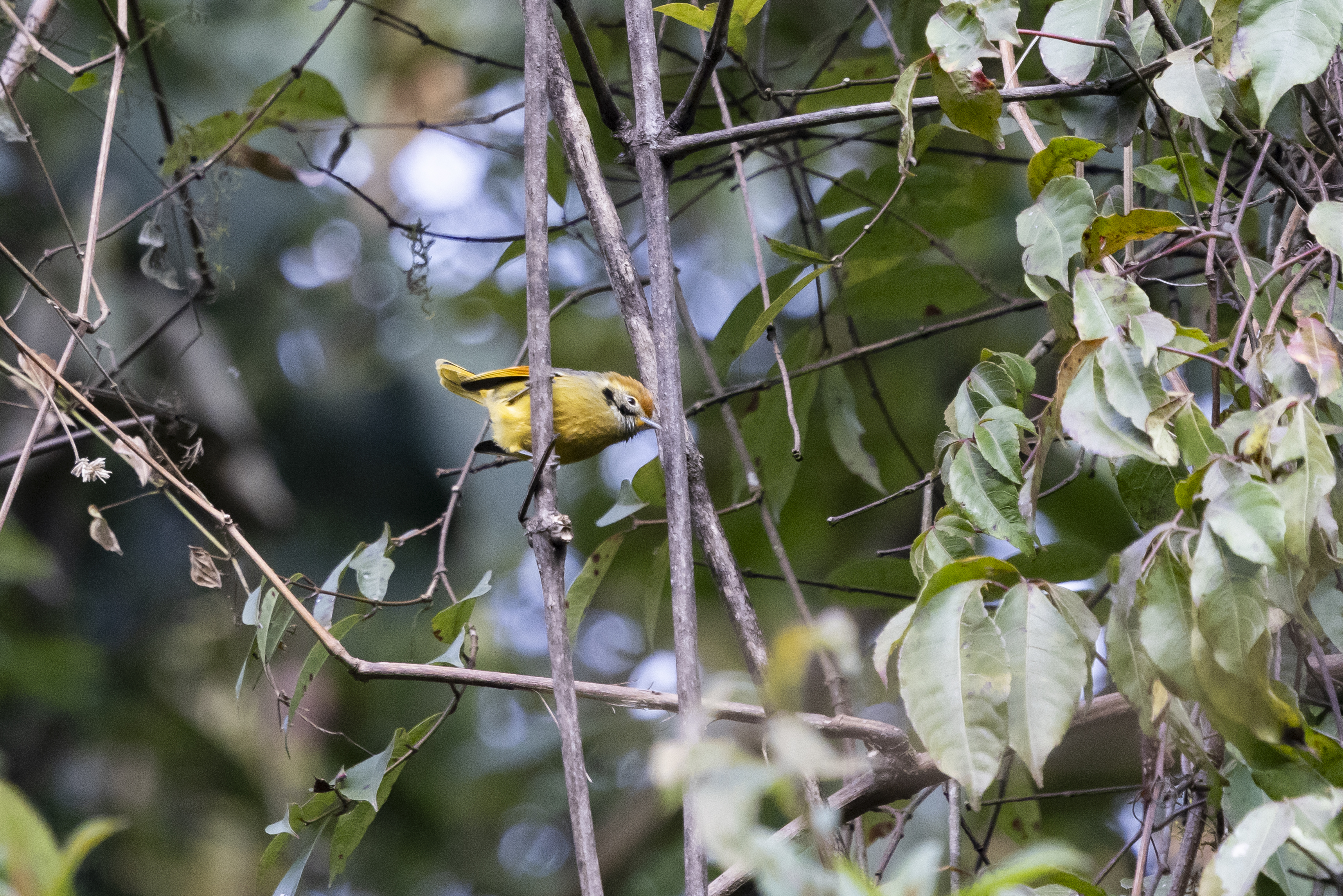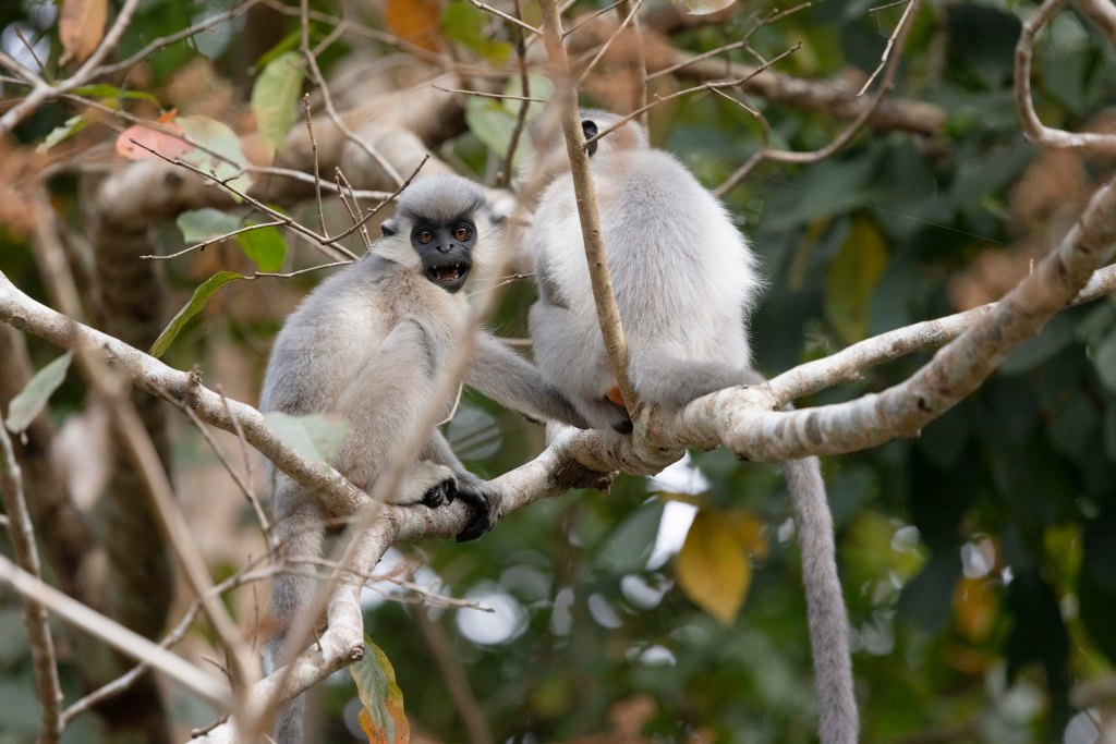 A session on a foggy morning at Kakoijana Reserve Forest, a tiny fragment on the Manas River Basin, begun slow but later proved productive for great views of the highly range restricted and endangered Gee’s Golden Langur, as they became active when the sun burnt through the fog. This disturbed patch, all of 17 sqkm, of largely secondary forest holds a high density of the species (400 individuals according to the reliable Ankur Burman (+91 97063 42001), who organised this visit and guided us at Kakoijana). This session also included a local style breakfast in an idyllic village home, the highlight of which was a dish of sticky rice steamed in a leaf (not sure which one), served with a tiny, albeit highly potent chilli, in aromatic (infused with the chilli goodness) mustard oil (there was some jaggery and yoghurt to take a edge off a little).