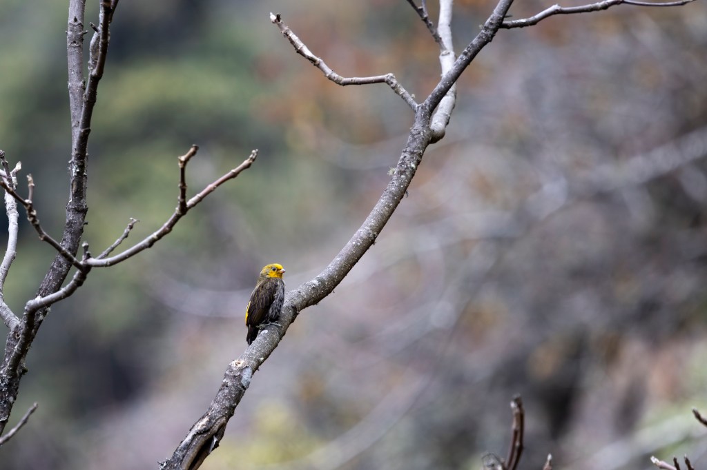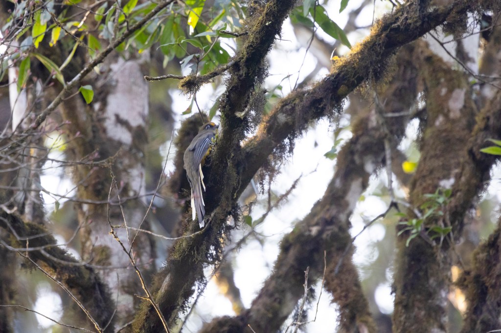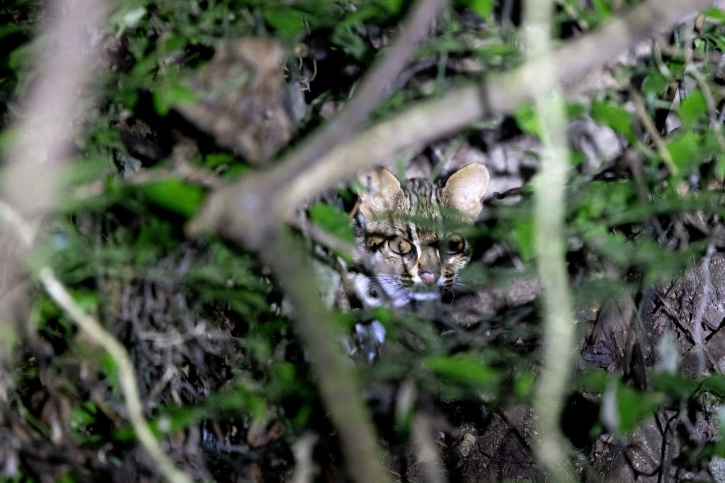 Days 4 to 8, Eaglenest Wildlife Sanctuary: The allure of this montane sanctuary is the potential to see rarities like the Asiatic Golden and Marbled Cats. Hence our effort was largely oriented towards seeing these species, which meant adapting a circadian rhythm akin to these wild felids, and keeping ‘an eye’ out for them as keenly as their potential prey. We didn’t do either too well, it would seem, as we did not see either species, in our efforts from early evening to around 10 PM/from pre-dawn to around 9-10 AM, traversing the forest road, at various sections, between the watchtower at Chaku (about 2300m) and Kellong (about 800m) – where past sightings of these species have been more regular (which is by no means regular). However all this effort did produce a solitary Mainland Leopard Cat, that leapt across the road a bit too fast for a positive ID in that moment. The cat was cooperative enough though, to hang-back on the steep slope adjacent to the road, for us to get a good second look, and to realise it was definitely a Leopard Cat – a good species for India, where sightings are not quite as regular, as in some other parts of the world. Some of the other mammals that showed were three brief sightings of Yellow-throated Marten, a fleeting Himalayan Brown Goral, Asian Palm Civet, Red Muntjac and several species of squirrel, including a surfeit of flying squirrels (Hairy-footed, Bhutan Giant, Grey-headed, Parti-coloured and Hodgson’s). We had hoped to see Arunachal Macaque, usually regular close to the entrance of the Eaglenest Sanctuary, leading upto the Eaglenest Pass, but despite recent sightings by villagers and fresh droppings, we missed the seeing the animals. Eaglesnest, as in other locations of the Eastern Himalayas, is also well known for its incredible bird diversity. However, while we were not especially focussed, it appeared that bird activity was rather subdued for this time of the year, which, during our visit was rainy, cold, cloudy and windy for longer than we (and the birds?) appreciated. We did, however, with our local guide’s expertise manage to see the elusive Ward’s Trogon and the striking Fire-tailed Myzornis, among species like Scarlet Finch, Long-tailed Sibia and various inhabitants of the undergrowth and mid-canopy in these montane forests (Yuhina’s, Laughingthrushes, Barwings, Siva’s and the like). The significant miss among birds was the Bugun Liochicla, a species we tried for in a dedicated effort in the general vicinity of Lama Camp, but without luck.