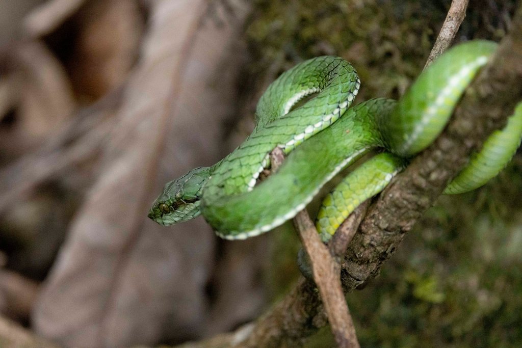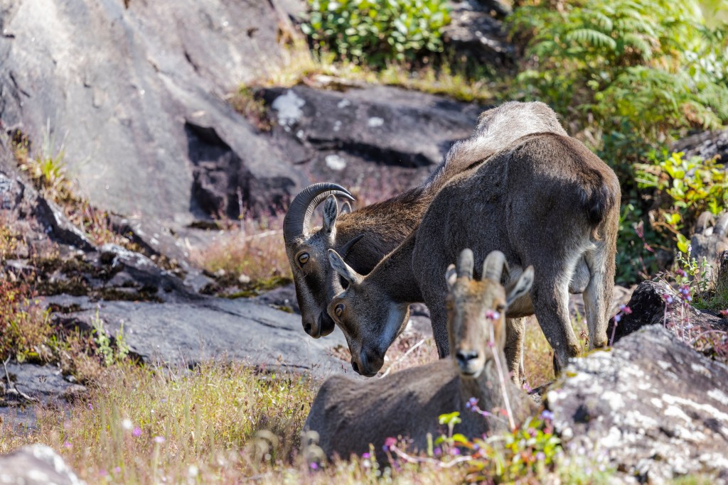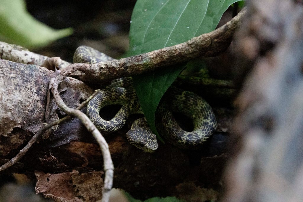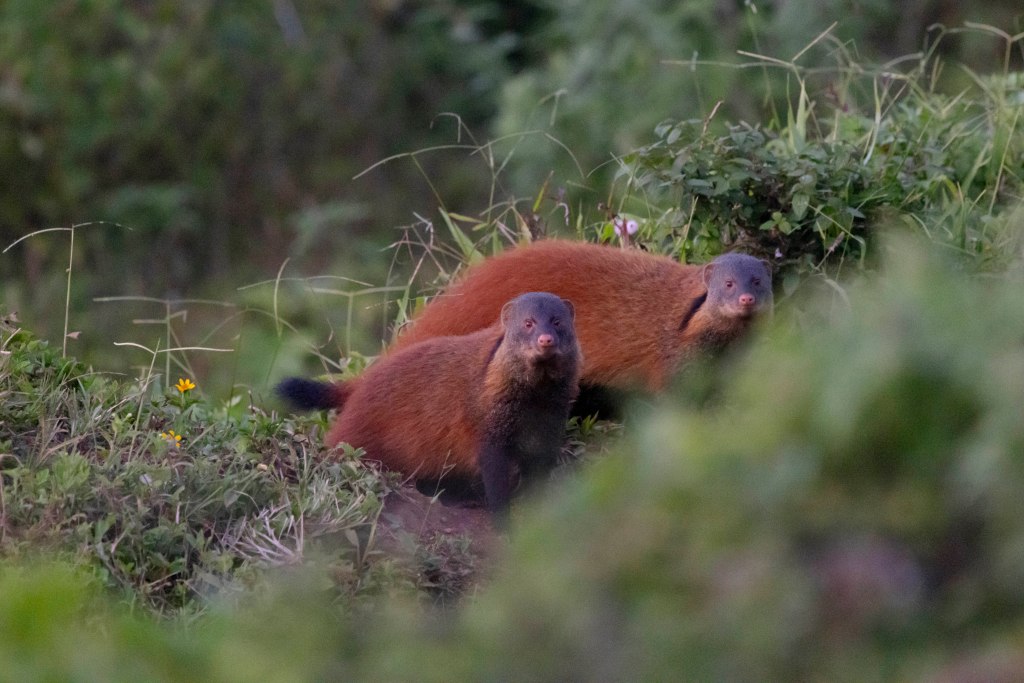 Two back to back guided trips to the southern Western Ghats, in late October and November this year, revealed much of the region’s specialities, including Lion-tailed Macaque (including those raiding coffee berries), Nilgiri Tahr, Nilgiri Langur, Great Pied Hornbill (in a dwindled annual congregation around Valparai), Grey Slender Loris, Brown Palm Civet, Indian Brown Mongoose, Grizzled Giant Squirrel, Nilgiri Striped Squirrel, Anamalai Pit Viper, Anamalai Gliding Frog (among various endemic frogs and reptiles) and various endemic birds (including a White-bellied Sholakili which was partial to crumbs of chocolate muffins at Eravikulam). The uncommonly seen Mainland Leopard Cat, Common Leopard (two individuals, lounging in tea gardens, a few steps away from people’s homes!), Asian Elephant, Indian Crested Porcupine and Indian Spotted Chevrotain were among the other highlights.