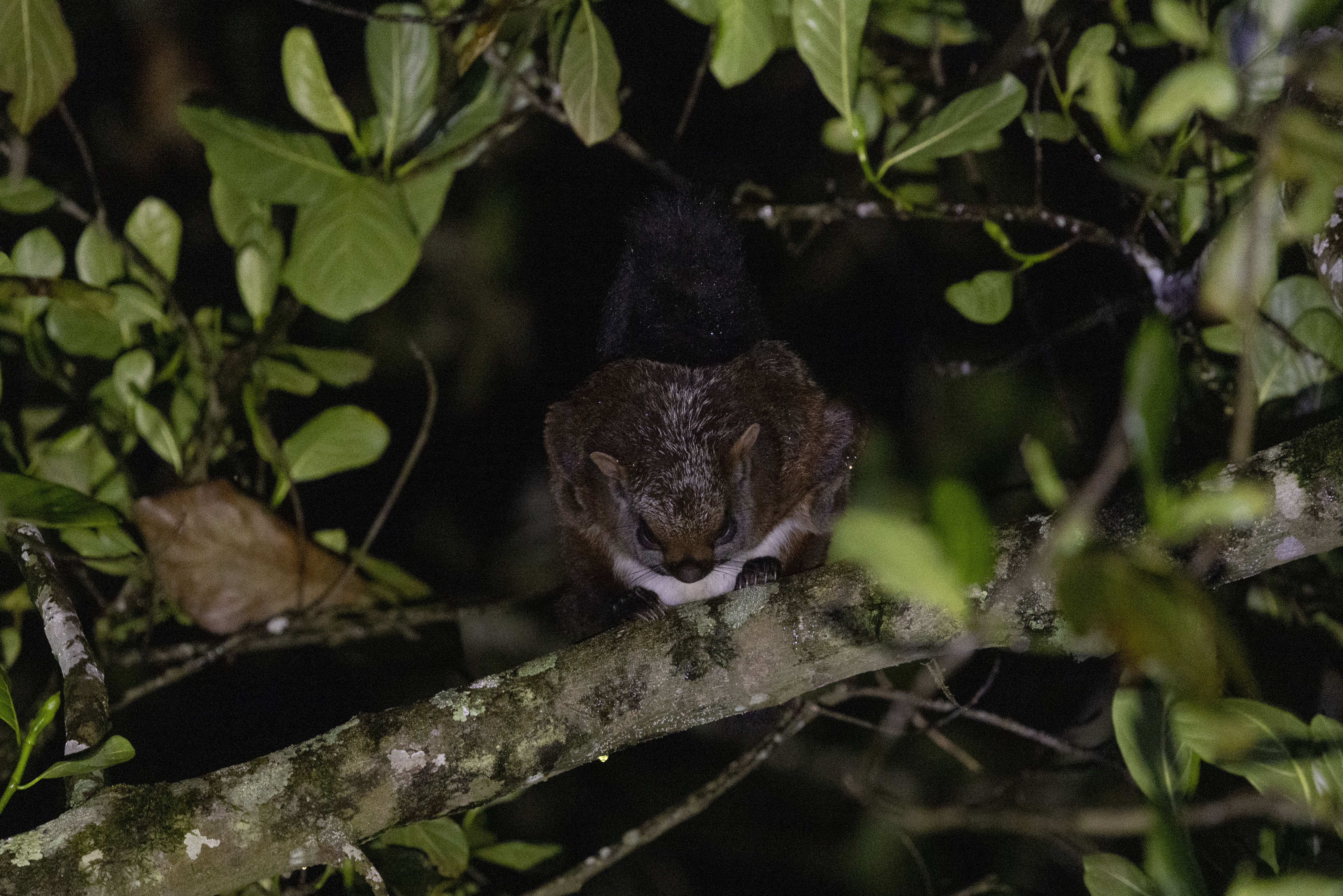 Much of our time was spent in the Anamalai hills around the human dominated landscape of Valparai (8 days, Lion-tailed Macaque, Nilgiri Langur, Brown Palm Civet, Brown Mongoose, Common Leopard, Mainland Leopard Cat and the most productive site for mammals otherwise), but also included visits to the hills around Munnar (4 days, Nilgiri Tahr, Grizzled Giant Squirrel Herpetofauna), Periyar Tiger Reserve (2 days. Endemic Birds, Indian Crested Porcupine) and Thattekad (1 day. Grey Slender Loris, Indian Crested Porcupine, Endemic Birds). There was a bit of moisture about, which, fortunately, did not affect sightings (though one did get a bit wet and leeched upon, at times) and turned out very well for a night out Herping around Munnar.